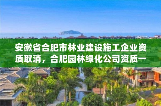 住建部下发通知安徽省合肥市林业建设施工企业资质取消,正式取消园林绿化企业资质核准安徽省合肥市林业建设施工企业资质取消,同时要求不得以任何方式,强制要求将城市园林绿化企业资质或市政公用工程施工总承包等资质作为承包园林绿化工程施工业务的条件。意味着园林绿化资质正式退出历史舞台,今后承揽园林绿化工程不再需要园林绿化资质安徽省合肥市林业建设施工企业资质取消!
