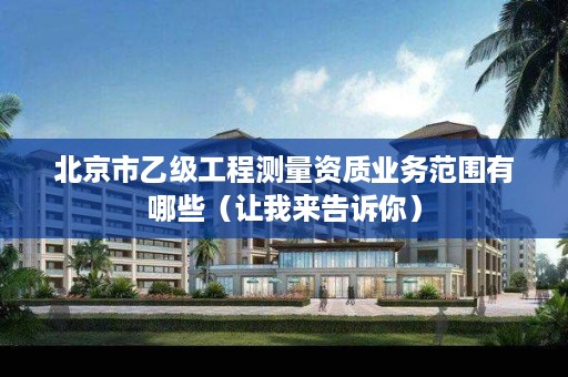 乙级工程测量专业作业限额:控制测量在三等以下;地形测量1:500比例尺在30km2以下,1:1000比例尺在50km2以下,1:2000比例尺在80km2以下,1:5000比例尺在100km2以下,1:1万比例尺在200km2以下;规划测量总建筑面积50万m2以下,国家重点建设工程不得承担;建筑工程测量建筑范围1km2以下,单个建筑物10万m2以下;变形形变与精密测量只从事一般精密设备安装,建筑面积在10万m2以下且高度在100m以下的建筑;市政工程测量范围为特大城市一般道路、大中等城市主干道路、一般立交桥;水利工程测量不得承担特大型水利水电工程;线路与桥隧测量为300km以下的线路,多孔跨径总长在100m以下的桥梁,4km以下的隧道;地下管线测量管线长度300km以下;矿山测量矿区控制面积200km2以下;工程测量监理相应于上述限额。