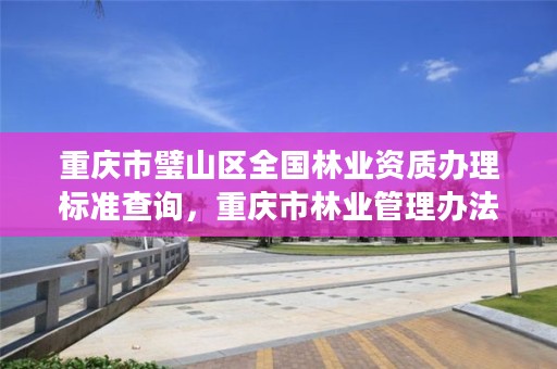 一、申请单位应当具备重庆市璧山区全国林业资质办理标准查询的条件重庆市璧山区全国林业资质办理标准查询:原林业部《林业调查规划设计单位资格认证管理暂行办法》。林业勘察设计资质办理重庆市璧山区全国林业资质办理标准查询的标准如下: