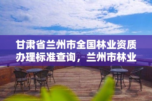 (四)近 5 年内主持或独立承担下列 5 个类别以上的林业调查规划设计业务:1.森林资源规划设计调查甘肃省兰州市全国林业资质办理标准查询;2.省级林业生态建设工程检查验收;3.森林分类区划界定;4.林业数表编制;5.野生动物或者野生植物调查监测;6.湿地资源或者荒漠化(沙化、石漠化)土地调查监测;7.占用征收林地可行性报告编制;8.国家或者省级重点林业生态建设工程实施方案编制;9.制定森林资源调查、监测和评价的相关标准。