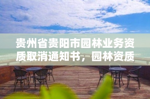 现在园林绿化企业资质的标准被划分为一级、二级、三级、三级以下四个级别,每一个级别资质的标准都是有一些区别的,具体吗的内容如下贵州省贵阳市园林业务资质取消通知书: