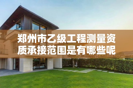 乙级工程测量专业作业限额:控制测量在三等以下;地形测量1:500比例尺在30km2以下,1:1000比例尺在50km2以下,1:2000比例尺在80km2以下,1:5000比例尺在100km2以下,1:1万比例尺在200km2以下;规划测量总建筑面积50万m2以下,国家重点建设工程不得承担;建筑工程测量建筑范围1km2以下,单个建筑物10万m2以下;变形形变与精密测量只从事一般精密设备安装,建筑面积在10万m2以下且高度在100m以下的建筑;市政工程测量范围为特大城市一般道路、大中等城市主干道路、一般立交桥;水利工程测量不得承担特大型水利水电工程;线路与桥隧测量为300km以下的线路,多孔跨径总长在100m以下的桥梁,4km以下的隧道;地下管线测量管线长度300km以下;矿山测量矿区控制面积200km2以下;工程测量监理相应于上述限额。
