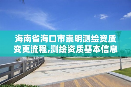 今天给各位分享海南省海口市崇明测绘资质变更流程的知识,其中也会对测绘资质基本信息变更进行解释,如果能碰巧解决你现在面临的问题,别忘了关注本站,现在开始吧!