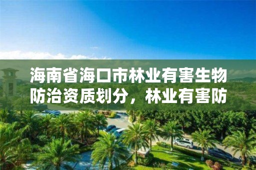 本技术规范规定了林业有害生物防治公司(专业队)海南省海口市林业有害生物防治资质划分的资质等级、条件、申请、审核等。