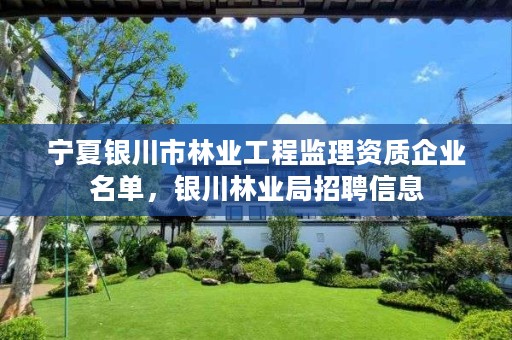 那么,大家知道这种资质的申报条件吗宁夏银川市林业工程监理资质企业名单?如果不知道的话,为大家介绍。