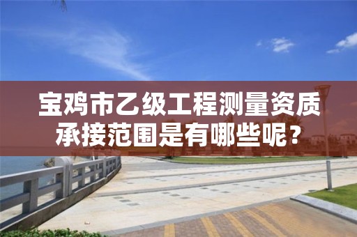 乙级工程测量专业作业限额:控制测量在三等以下;地形测量1:500比例尺在30km2以下,1:1000比例尺在50km2以下,1:2000比例尺在80km2以下,1:5000比例尺在100km2以下,1:1万比例尺在200km2以下;规划测量总建筑面积50万m2以下,国家重点建设工程不得承担;建筑工程测量建筑范围1km2以下,单个建筑物10万m2以下;变形形变与精密测量只从事一般精密设备安装,建筑面积在10万m2以下且高度在100m以下的建筑;市政工程测量范围为特大城市一般道路、大中等城市主干道路、一般立交桥;水利工程测量不得承担特大型水利水电工程;线路与桥隧测量为300km以下的线路,多孔跨径总长在100m以下的桥梁,4km以下的隧道;地下管线测量管线长度300km以下;矿山测量矿区控制面积200km2以下;工程测量监理相应于上述限额。