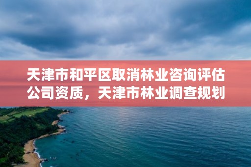 2、看公司是否有需要进行前置行政审批天津市和平区取消林业咨询评估公司资质的经营范围天津市和平区取消林业咨询评估公司资质,如果仅是从事咨询业务的话是不需要进行前置审批的,可直接到工商机关注册登记就可以了;