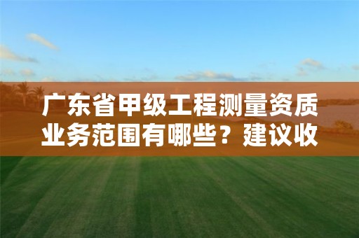 甲级业务范围:控制测量、地形测量、规划测量、建筑工程测量、变形形变与精密测量、市政工程测量、水利工程测量、线路与桥隧测量、地下管线测量、矿山测量、工程测量监理。