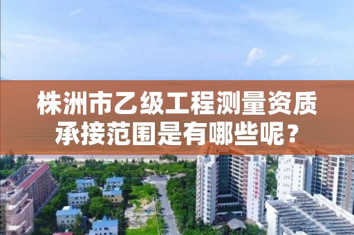 乙级工程测量专业作业限额:控制测量在三等以下;地形测量1:500比例尺在30km2以下,1:1000比例尺在50km2以下,1:2000比例尺在80km2以下,1:5000比例尺在100km2以下,1:1万比例尺在200km2以下;规划测量总建筑面积50万m2以下,国家重点建设工程不得承担;建筑工程测量建筑范围1km2以下,单个建筑物10万m2以下;变形形变与精密测量只从事一般精密设备安装,建筑面积在10万m2以下且高度在100m以下的建筑;市政工程测量范围为特大城市一般道路、大中等城市主干道路、一般立交桥;水利工程测量不得承担特大型水利水电工程;线路与桥隧测量为300km以下的线路,多孔跨径总长在100m以下的桥梁,4km以下的隧道;地下管线测量管线长度300km以下;矿山测量矿区控制面积200km2以下;工程测量监理相应于上述限额。