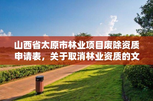 林地许可山西省太原市林业项目废除资质申请表的办理程序 1、申请人在市政务中心导办台抽号后山西省太原市林业项目废除资质申请表,到林业局窗口申报材料。窗口人员对材料进行初审,材料初审合格后予以受理,发放受理通知书;材料不齐或不符合法定形式的,一次性告知申请人。 2、审核申报资料; 3、组织现场查验; 4、首席代表签署审核意见,报领导签发; 5、申请人缴纳费用; 5、申请人凭受理通知书在林业局窗口领取上报文件。 二、申报材料 1、县区林业主管部门关于占用林地的申请 2、填写《使用林地申请表》(一式五份) 3、计划部门的立项批复(大型项目要有初步设计批复) 4、被占用林地的权属证明 5、占用林地协议(如实填写林地、林木补偿费用及 安置补助费 ) 6、符合省林业厅规定的林业设计资质等级的林业调查设计单位编制的使用林地可行性报告 7、占用征用国有林地应出具该国有单位关于占用林地事宜的公示、林场职工大会记录和职工签名材料,有资质的资产评估单位所做的被占用林地的 资产评估报告 ;占用征用集体林地的,必须提交村民会议记录和三分之二一以上村民的签字材料 8、建设单位应出具法人证明,勘探、开采矿产资源单位出具采、探矿许可证 9、县级林业主管部门森林植被恢复费收缴票据 10、现场勘验报告和植被恢复措施,植被恢复措施要落实到山头地块 11、涉及污染的建设项目要提供环保部门的《环境影响评价报告》批复 12、若属 非法占用林地 补办手续,要提交《 处罚决定书 》和有关罚款票据 三、法定期限 从接到申请之日算起14个工作日(节假日除外)内办理