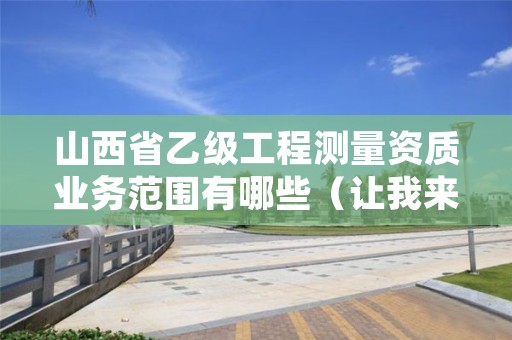 乙级工程测量专业作业限额:控制测量在三等以下;地形测量1:500比例尺在30km2以下,1:1000比例尺在50km2以下,1:2000比例尺在80km2以下,1:5000比例尺在100km2以下,1:1万比例尺在200km2以下;规划测量总建筑面积50万m2以下,国家重点建设工程不得承担;建筑工程测量建筑范围1km2以下,单个建筑物10万m2以下;变形形变与精密测量只从事一般精密设备安装,建筑面积在10万m2以下且高度在100m以下的建筑;市政工程测量范围为特大城市一般道路、大中等城市主干道路、一般立交桥;水利工程测量不得承担特大型水利水电工程;线路与桥隧测量为300km以下的线路,多孔跨径总长在100m以下的桥梁,4km以下的隧道;地下管线测量管线长度300km以下;矿山测量矿区控制面积200km2以下;工程测量监理相应于上述限额。