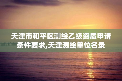 关于天津市和平区测绘乙级资质申请条件要求和天津测绘单位名录的介绍到此就结束了,不知道你从中找到你需要的信息了吗 ?如果你还想了解更多这方面的信息,记得收藏关注本站。